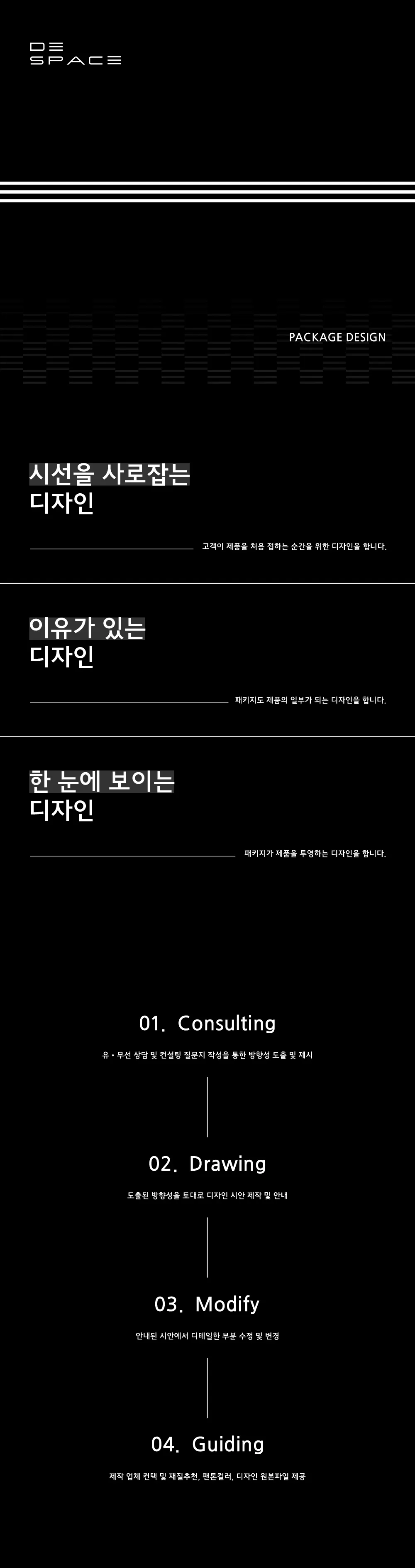 브랜드에 맞는 패키지는 디자인 기획부터가 중요합니다. 로고부터 패키지까지 디스페이스에서 해결 해드립니다.